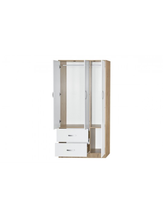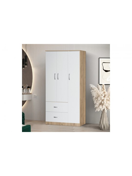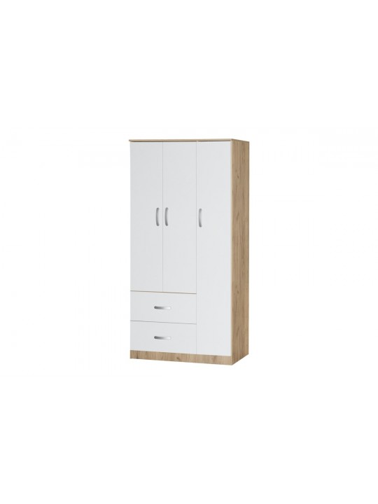 Τρίφυλλη Pakoworld Ντουλάπα Ρούχων Zelia Λευκή - Oak Απόχρωση 90x42x180cm