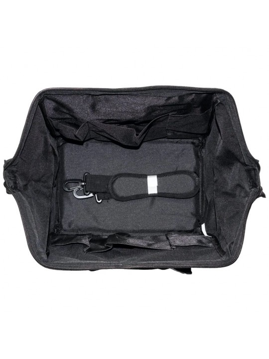 Τσάντα μεταφοράς κομμωτηριακού εξοπλισμού από τη WAHL. Κατασκευασμένη από ανθεκτικό καμβά πολυεστέρα για μεγαλύτερη αντοχή και διάρκεια ζωής, διαθέτει ευρύχωρο εσωτερικό ικανό να φιλοξενήσει κουρευτικές μηχανές, ψαλίδια, χτένες και αξεσουάρ. Στο εσωτερικό της περιλαμβάνει τέσσερις θήκες, τρεις με κλείσιμο Velcro και μία με φερμουάρ, ενώ εξωτερικά διαθέτει δύο επιπλέον θήκες για άμεση πρόσβαση. Ο ενισχυμένος πάτος με τα τέσσερα ποδαράκια προσφέρει σταθερότητα και προστασία από φθορές και ο αφαιρούμενος/ρυθμιζόμενος ιμάντας ώμου και τα χερούλια εξασφαλίζουν άνετη μεταφορά.