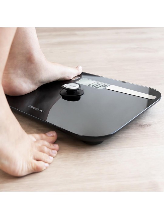 Bluetooth, ψηφιακή ζυγαριά μπάνιου για τη ζύγιση 8 έως 180 kg από την Cecotec! Παρέχει ακριβείς μετρήσεις 6 βασικών παραμέτρων (βάρους, σωματικού λίπους, δείκτη μάζας σώματος, μυών, οστών και νερού), ενώ διαθέτει μεγάλη LCD οθόνη, 4 αισθητήρες για μέγιστη ακρίβεια μέτρησης, λειτουργία αυτόματης απενεργοποίησης και αντιολισθητικά πόδια. Ο εξαιρετικά επίπεδος σχεδιασμός της από σκληρυμένο γυαλί πάχους 5 mm την καθιστά ιδανική προσθήκη σε κάθε χώρο.