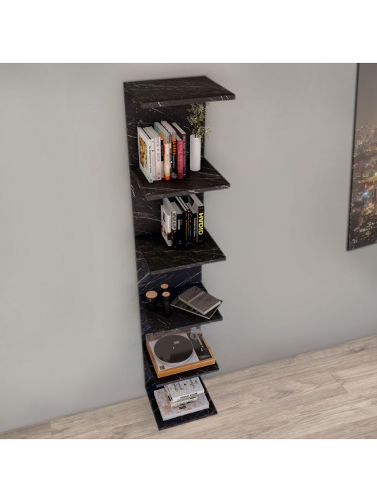 Βιβλιοθήκη - Ραφιέρα τοίχου μελαμίνης Ogden Megapap χρώμα μαύρο εφέ μαρμάρου 34,5x30x180εκ.