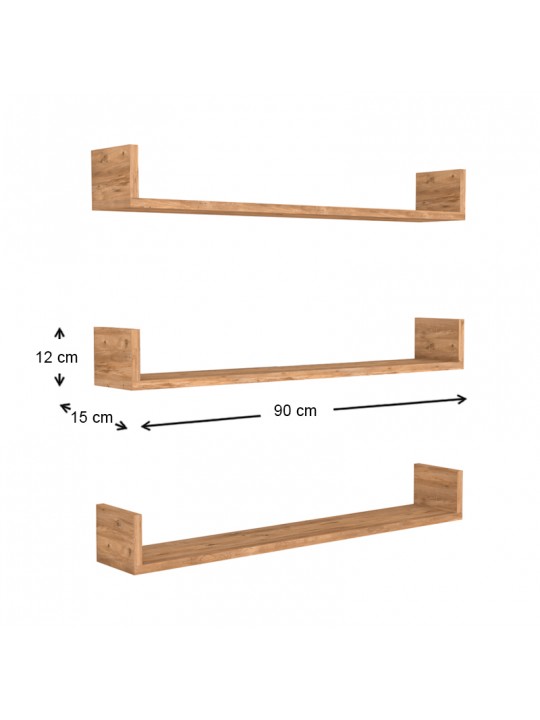 Ραφιέρα τοίχου Tyrion Megapap 3 τεμαχίων από μελαμίνη χρώμα pine oak 90x15x12εκ.
