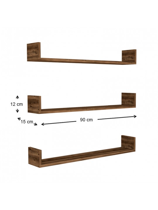 Ραφιέρα τοίχου Tyrion Megapap 3 τεμαχίων από μελαμίνη χρώμα καπνιστή καρυδιά 90x15x12εκ.