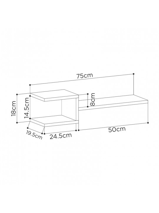 • Διαστάσεις κάθε τεμαχίου: Μήκος  75 x Βάθος 19,5 x Ύψος 18 εκ.