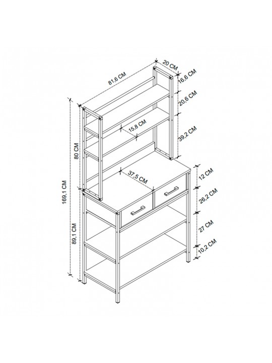 Έπιπλο κουζίνας Printo Megapap μεταλλικό - μελαμίνης χρώμα μαύρο - καπνιστή καρυδιά 81,6x37,5x169,1εκ.