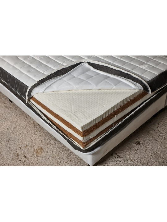 - ΚΟΚΟΦΟΙΝΙΚΑΣ: Φυσικό προϊόν το οποίο προέρχεται από τις ίνες του εξωτερικού φλοιού της καρύδας. Οι ίνες περιέχουν κλειστές κυψέλες γεμάτες αέρα, οι οποίες χορηγούν καλή μόνωση και ανθεκτικότητα στην μούχλα και στην υγρασία του περιβάλλοντος. Επίσης, είναι ελαστικές, ισχυρές και δύσκολα διαβρώνονται με την πάροδο του χρόνου. Δημιουργώντας έτσι μια προστατευτική στρώση για τα υπόλοιπα υλικά. Ταυτόχρονα επιτρέπει τον σωστό αερισμό του εσωτερικού των στρωμάτων.