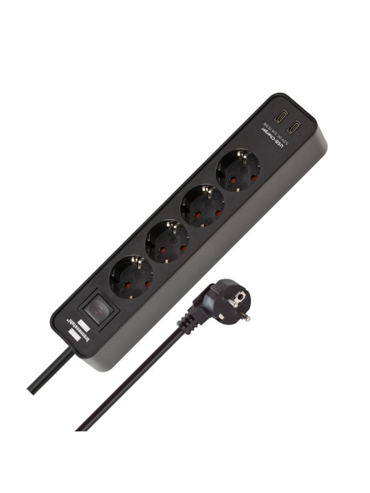 Brennenstuhl - Πολύπριζο 4 θέσεων με 2 x USB-C και διακόπτη BRENNENSTUHL 1153240106 Ecolor μάυρο