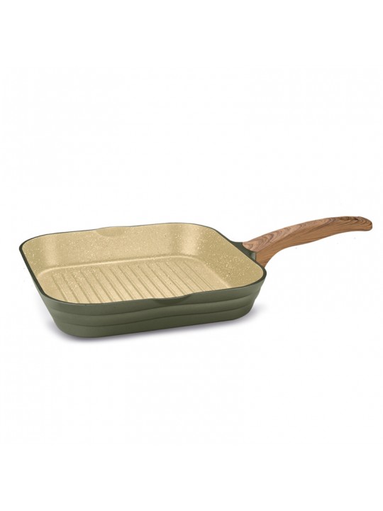 - Αντιολισθητική λαβή βακελίτη με “soft touch” όψη ξύλου, για σταθερό κράτημα και άνετο μαγείρεμα