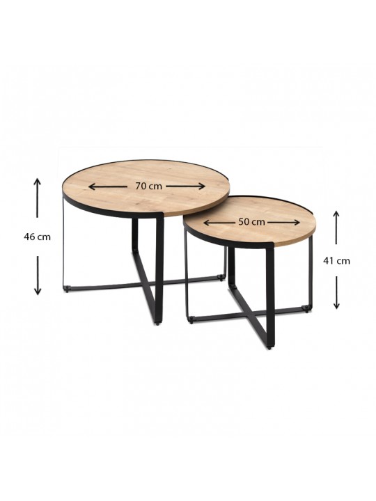 Σετ τραπεζάκια σαλονιού Davis Megapap 2τμχ. μεταλλικά - μελαμίνης σε φυσικό οξιάς 70x69x46εκ.
