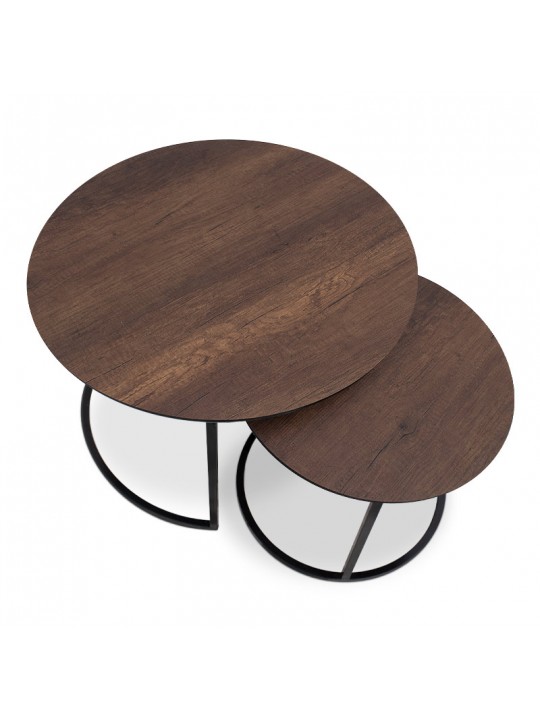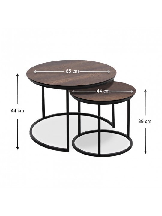 - Το σετ περιλαμβάνει δύο στρογγυλά τραπεζάκια, ένα μικρότερο κι ένα μεγαλύτερο.