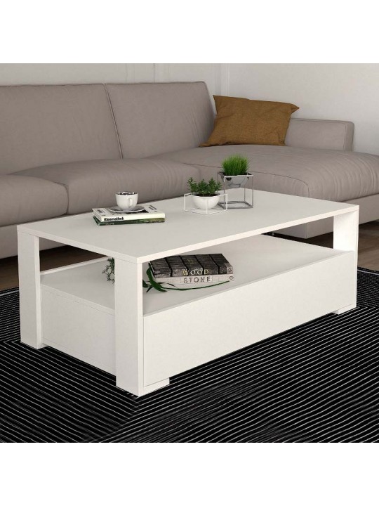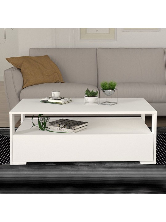 Τραπεζάκι σαλονιού Balina Megapap από μελαμίνη χρώμα λευκό 110x60x40εκ.