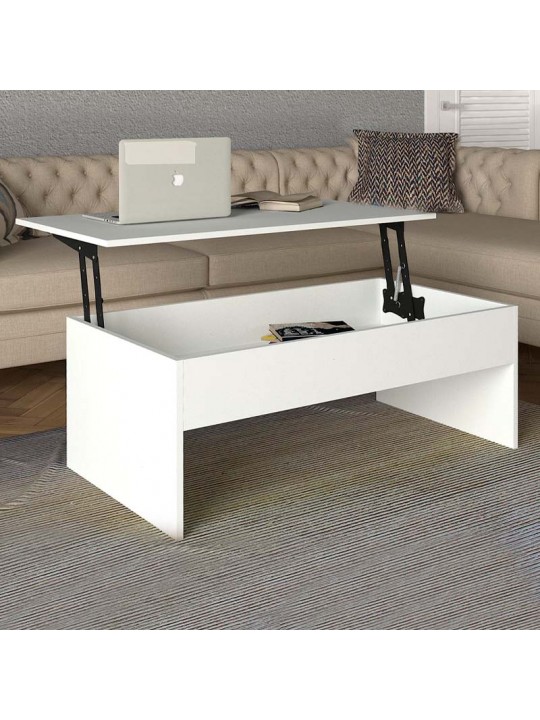 Το τραπεζάκι σαλονιού Devon διαθέτει μηχανισμό που επιτρέπει να σηκωθεί η επιφάνεια του σε θέση σερβιρίσματος για το φαγητό ή το laptop, δημιουργώντας χώρο για την αποθήκευση αντικειμένων στο εσωτερικό του.