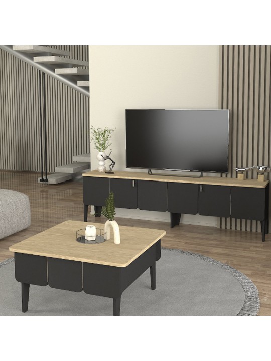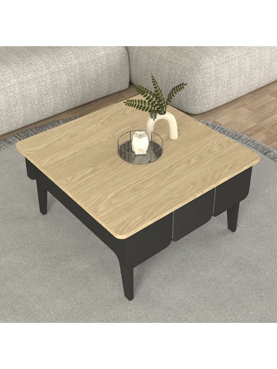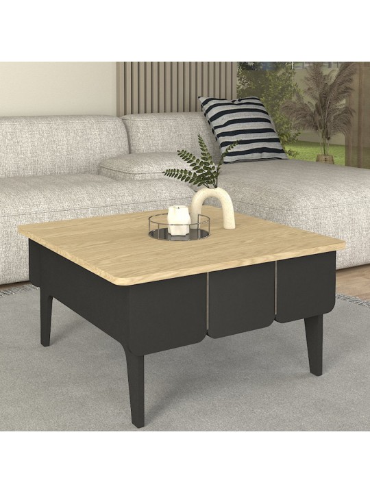Τραπεζάκι σαλονιού Pedro Megapap χρώμα ανθρακί - rota oak 73,2x73,2x38,6εκ.