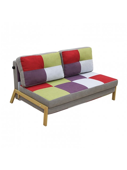 Sara Q καναπές με ύφασμα χρώματος patchwork και μεταλλικά πόδια βαφής.Με ιδιαίτερο design που θα δώσει μια άριστη κομψότητα στον χώρο σας.Σας δίνει την δυνατότητα ανοίγοντας τα πόδια να τον μετατρέπεται εύκολα σε κρεβάτι.