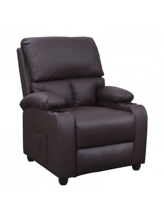 SUNDAY πολυθρόνα relax με επένδυση από καφέ PU.Μία αναπαυτική πολυθρόνα που προσφέρει στιγμές χαλάρωσης και ξεκούρασης και σας επιτρέπει να προσαρμόσετε τη θέση της πλάτης και των ποδιών ανάλογα με τις ανάγκες σας.