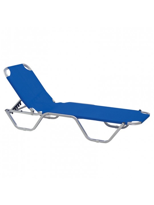 Ξαπλώστρα αλουμινίου επαγγελματική σε χρώμα blue με πλήρως ανοδιωμένο σκελετό 25Χ25Χ1,5εκ, ανοξείδωτες βίδες, με διάτρητο διπλό pvc ενισχυμένο 2Χ1 για απόλυτη αντοχή, 4 αντηρίδες στήριξης για μεγαλύτερη σταθερότητα, ρυθμιζόμενη πλάτη, μαλακά πλαστικά στο κάτω μέρος για μέγιστη αντοχή κατά την αποθήκευση, στοιβαζόμενη. Πλήρως κατάλληλη για επαγγελματική χρήση.