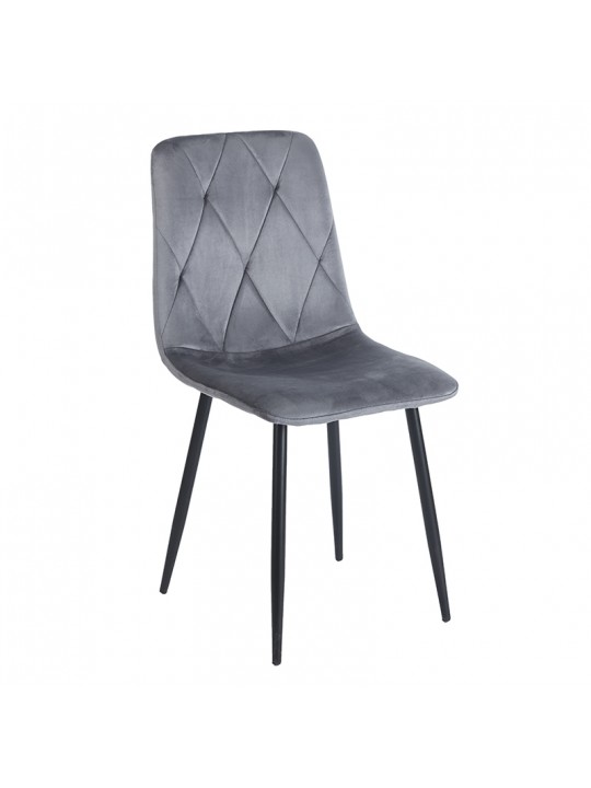 Eva καρέκλα με μεταλλικό σκελετό βαφής και κάθισμα από velvet ύφασμα σε χρώμα grey.Ο σχεδιασμός της συνδυάζει το κλασικό με το μοντέρνο,δημιουργώντας ένα κομψό σύνολο για να διακοσμήσετε τον χώρο σας.
